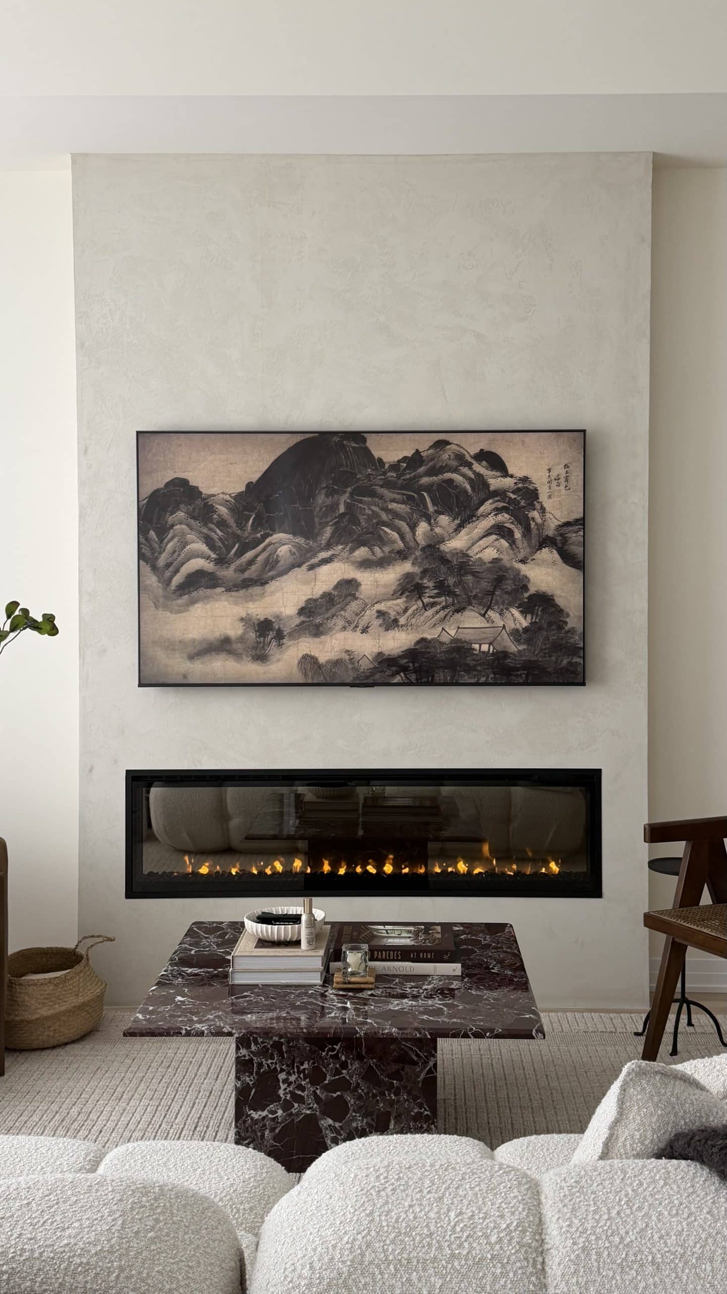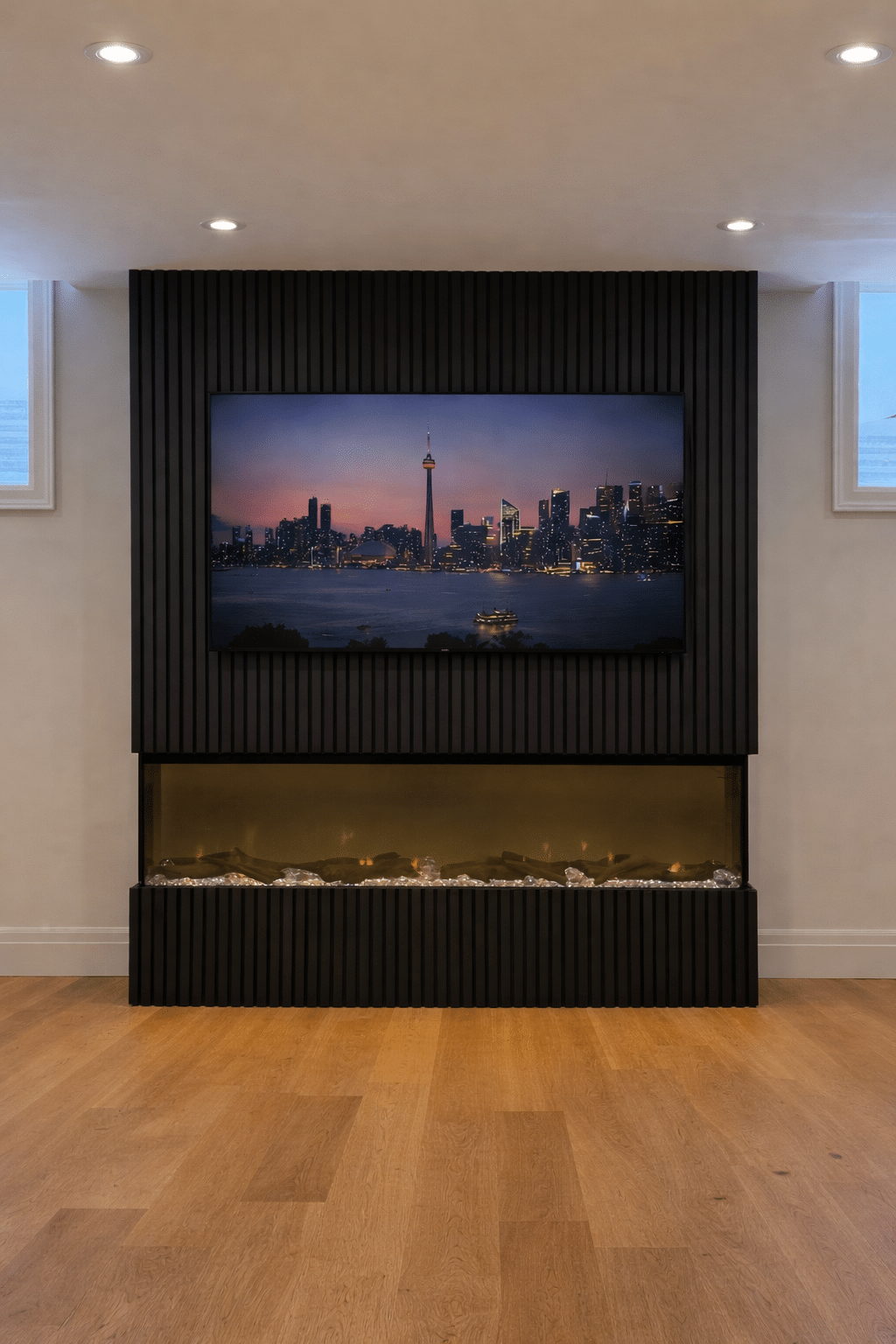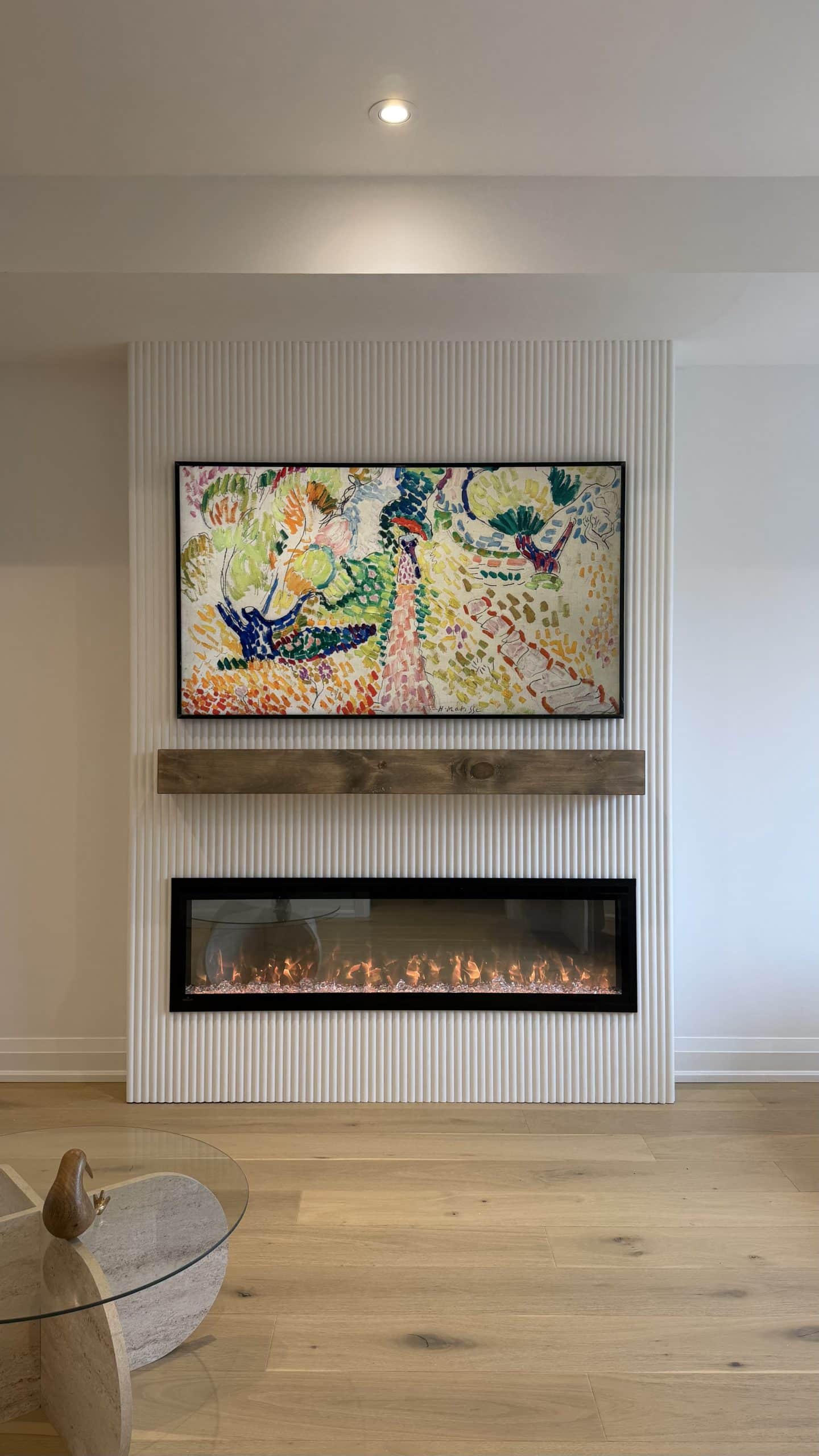 60" Dimplex XLF60 with a 75" tv Porcelain fireplace build.