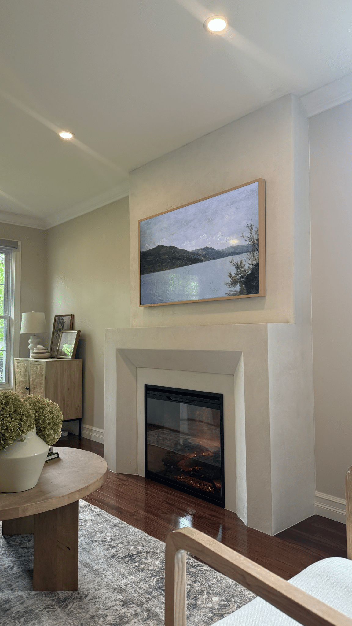 Fireplace build in Microcement with a custom mantel surround
